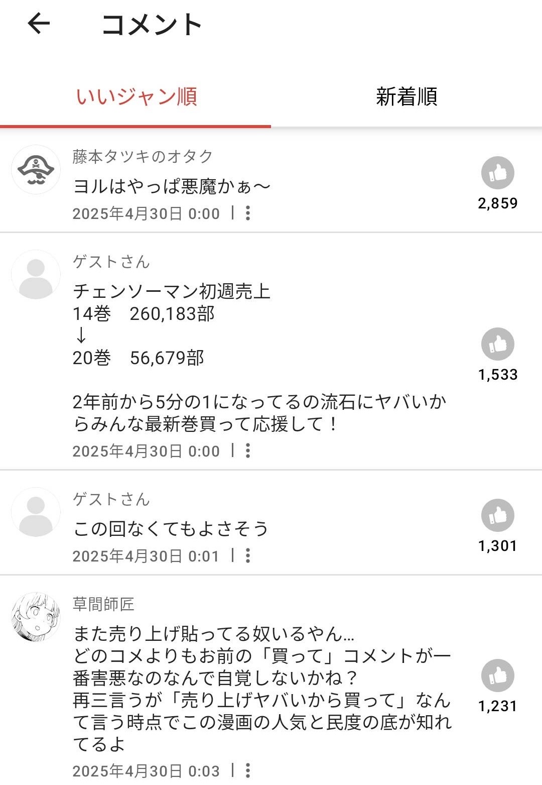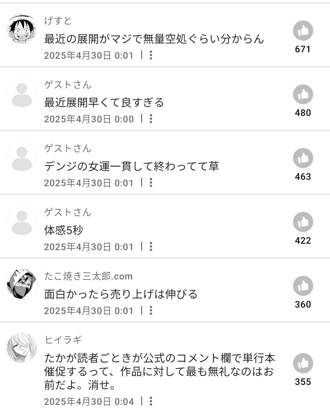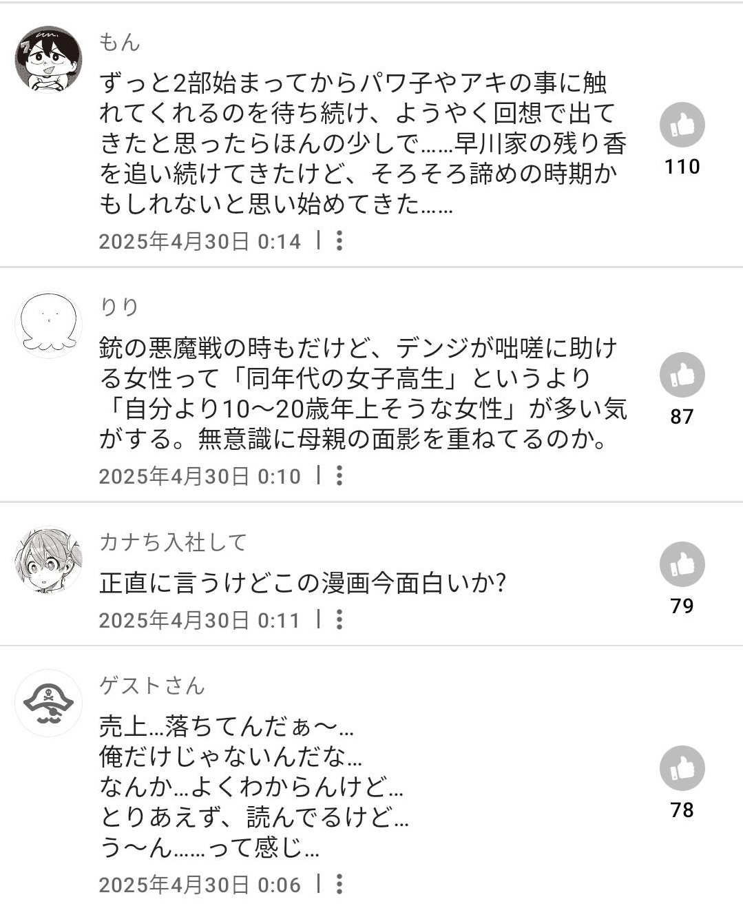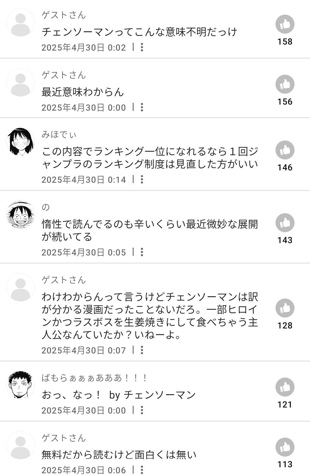 【画像】チェンソーマン2部、ジャンプ+のコメント欄がとんでもなく荒れるwwww