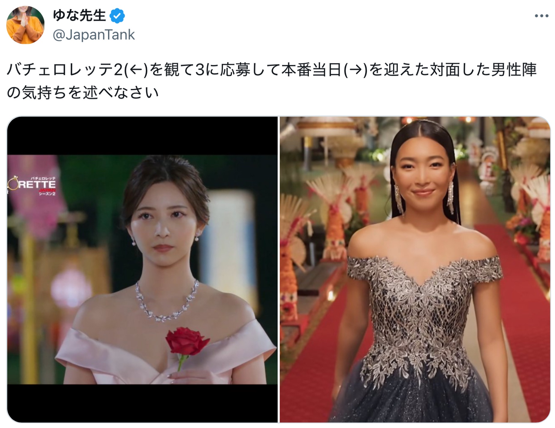バチェロレッテって番組でモテる女が応募してきたたくさんの男の中からパートナーを選ぶみたいな番組なんやけども