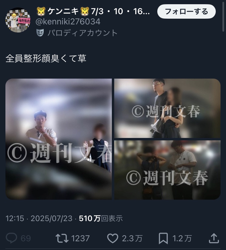 他人の顔面評論するくせに自分の顔面開示してるのは弱すぎる