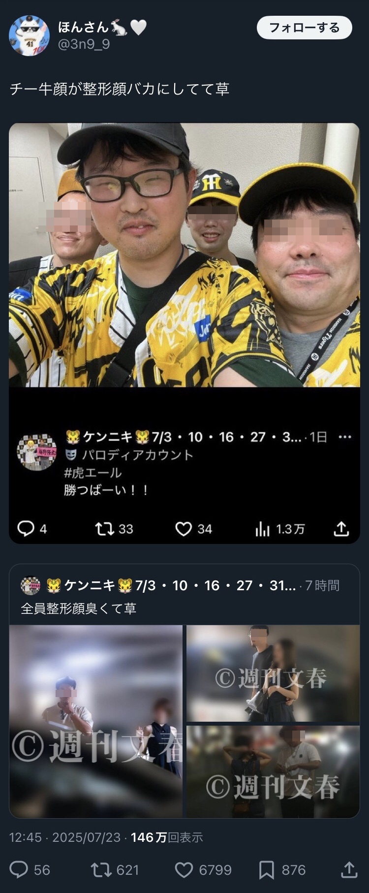 【画像】港区女子に整形煽りした阪神ファンさん、カウンターで顔面を晒されるwww