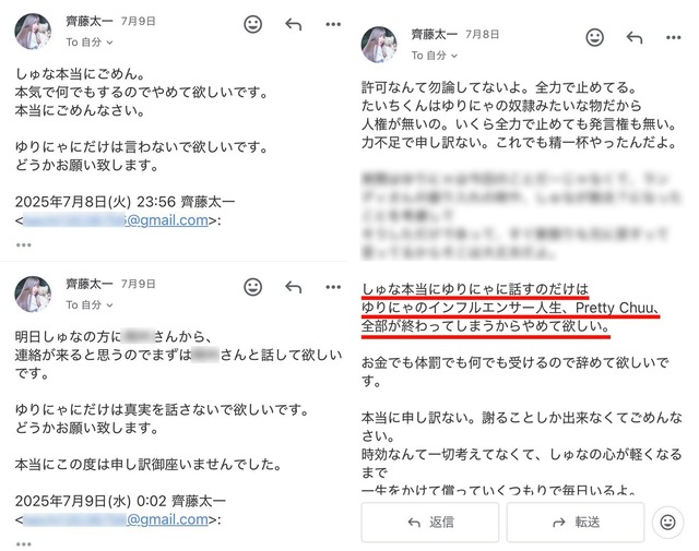 ゆりにゃに言った場合、ゆりにゃの人生やアイドルグループ全てが終わるという圧をかけられる。更に100万円で示談交渉