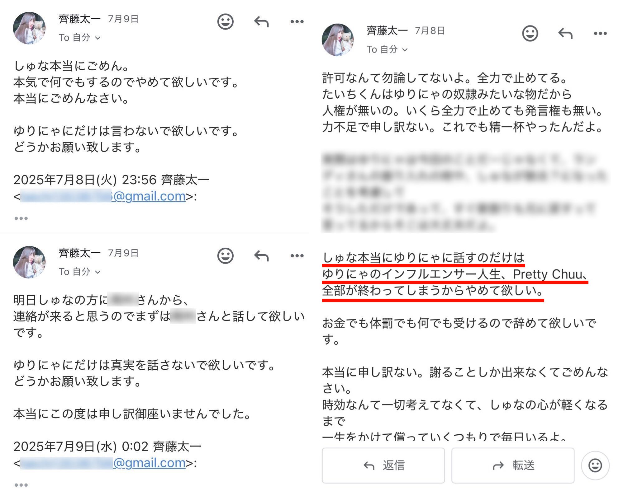 ゆりにゃに言った場合、ゆりにゃの人生やアイドルグループ全てが終わるという圧をかけられる。更に100万円で示談交渉
