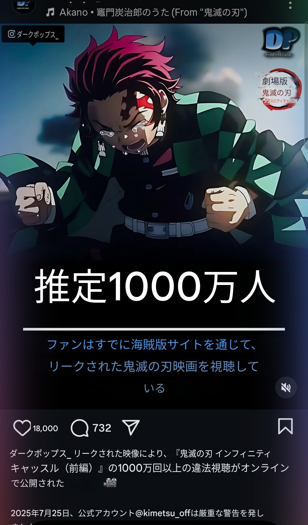 【悲報】鬼滅の刃違法視聴、1000万再生突破、外国人「鬼滅は世界で人気あるのに同時公開しないからこうなる」