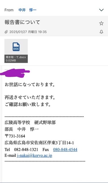 また、保護者のものと思われるアカウントの投稿では、学校が高野連へ送った報告書の内容と、保護者に渡した報告書の内容が違うとの指摘がなされている。この点について事務長は「(保護者が言う報告書は)中途のもので、最終的な報告書ではないのではないかと思っています。高野連に送ったものが最終的な報告書です」と説明した。