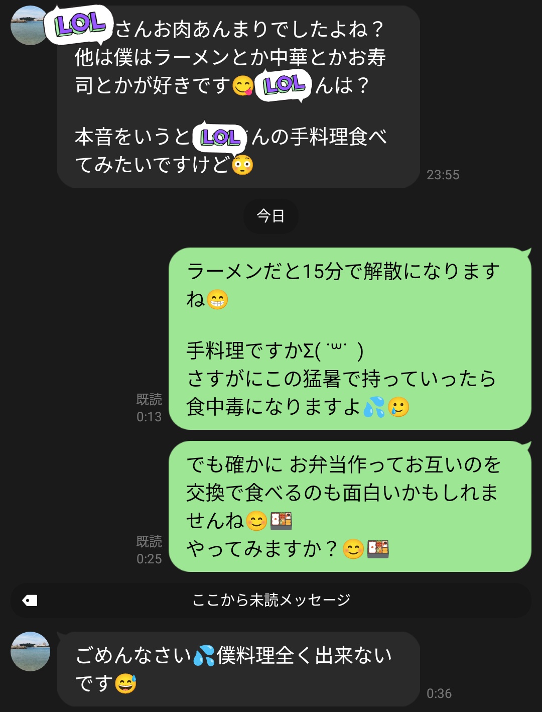 百歩譲って「じゃあ、お互いお弁当作って交換して食べましょう😀」と提案したら