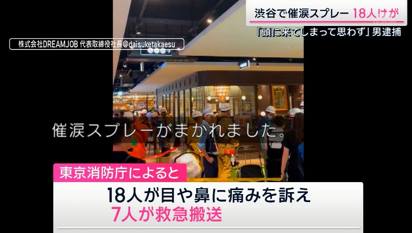 渋谷ヒカリエ7階で催涙スプレー 7人搬送 40代男を逮捕 面識ない男性と口論かヤフーニュース警視庁などによりますと、23日午後1時半ごろ、渋谷ヒカリエ7階のレストランフロアで催涙スプレーがまかれ、17人が目や鼻に痛みを訴えるなどして7人が救急搬送されました。