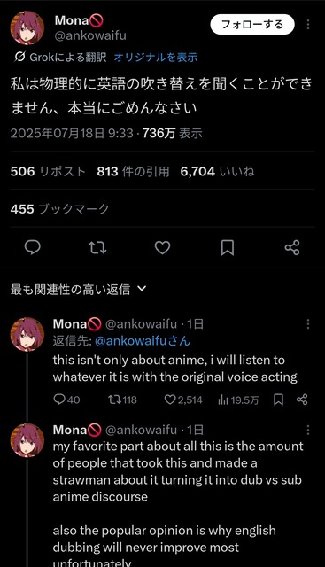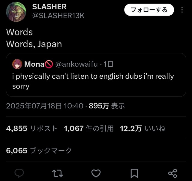 【画像】海外オタクさん、アニメの英語吹替はダサいという風潮になっていたwww