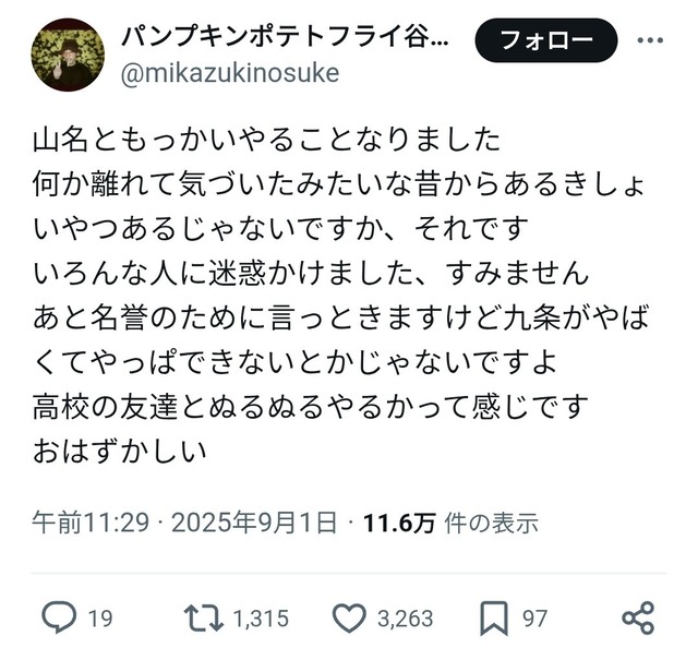 解散してたのは知ってたけど九条とやってたのかよ