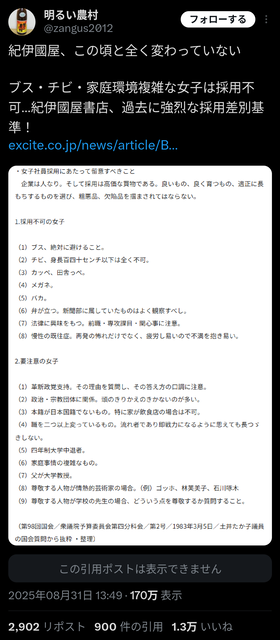 【悲報】超大手企業「ブス・チビ・家庭環境複雑な女子は採用不可です!」