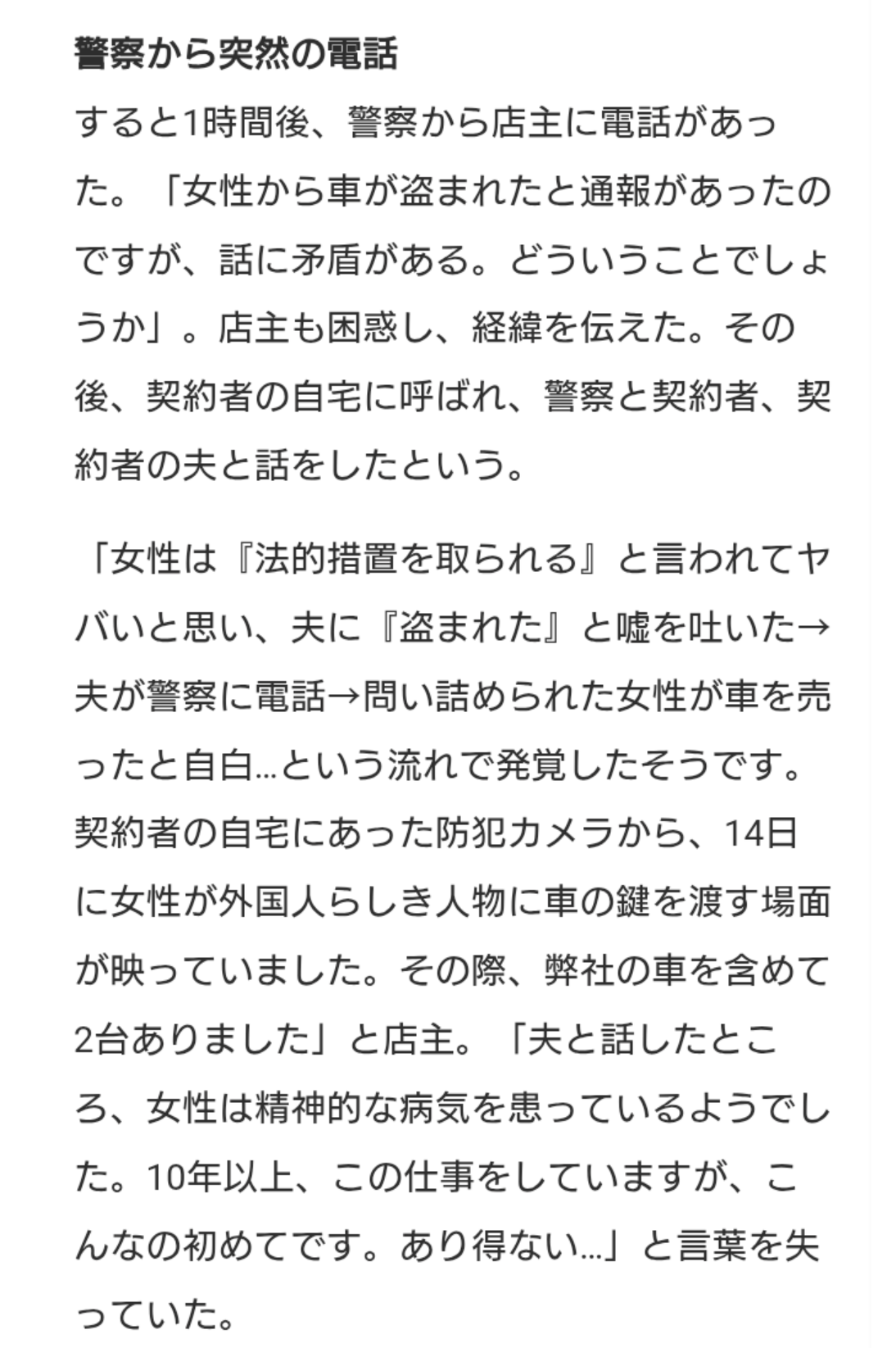 【画像】女さん、借りたレンタカーを外国人に売ってしまう・・・・