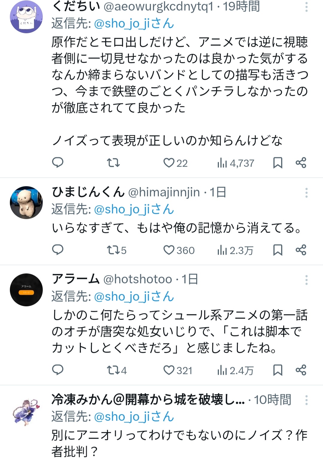 「原作がまず素晴らしく、原作サイドもとても協力的で、監督含めスタッフも音楽チームも本気で動いてるし、けろりらさん(※キャラクターデザイン/総作画監督)もすごく良い絵を描いてくれている。制作の段階からこれなら覇権が取れるって思える作品なのに、そうしたノイズがあると多くの人に見てもらえなくなってしまいます」