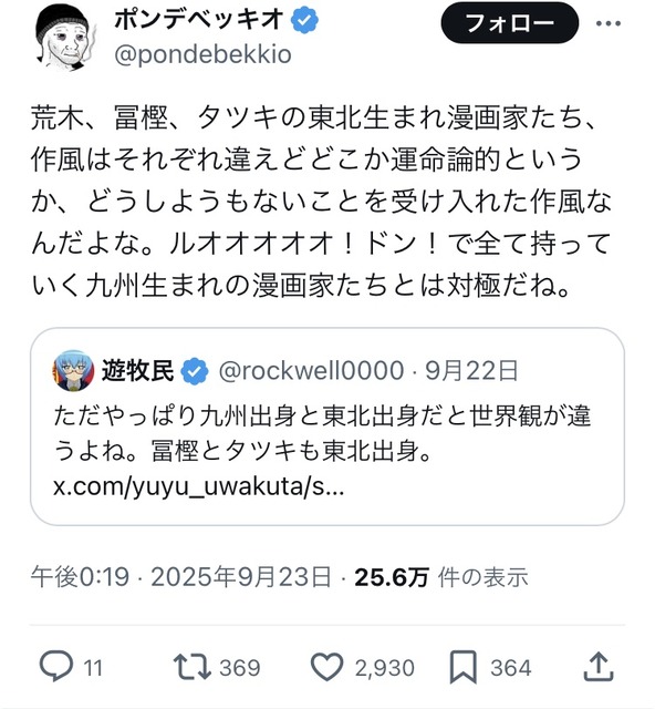 「九州生まれの漫画家」と「東北生まれの漫画家」で決定的な違いがコレwwwww