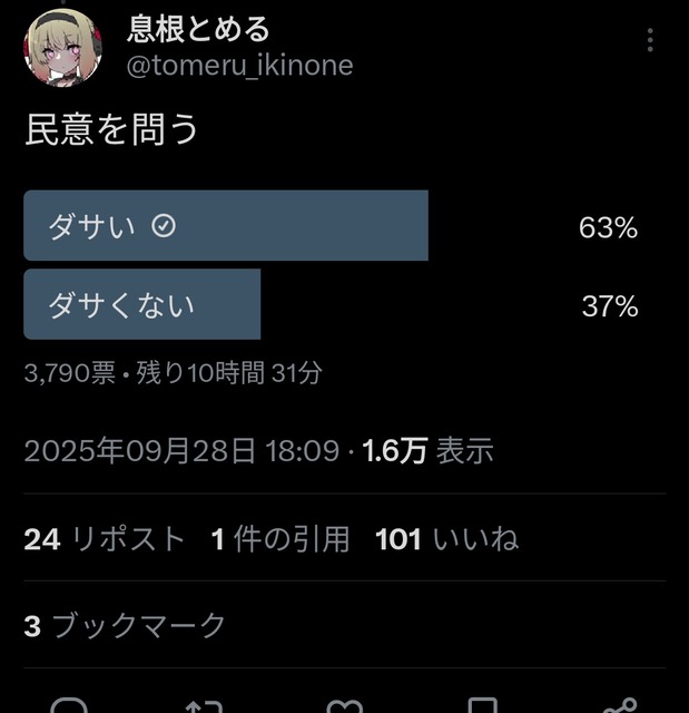 — 息根とめる (@tomeru_ikinone) September 28, 2025