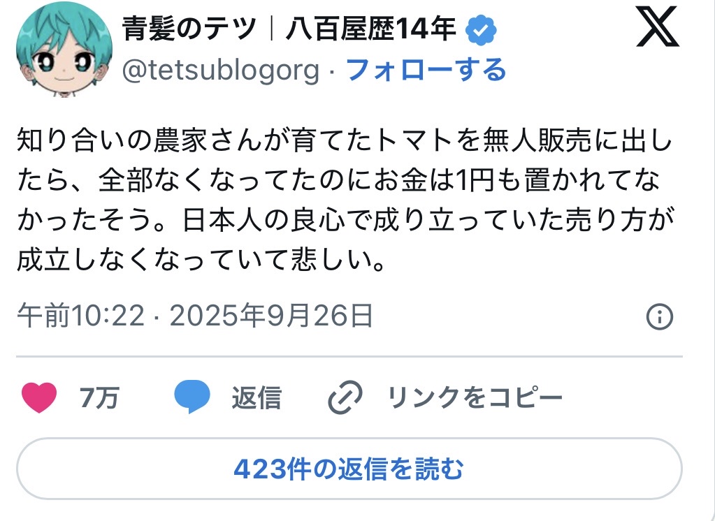 【画像】農家さん、トマトの無人販売を行った結果あまりにも悲惨なことになってしまう・・・・・