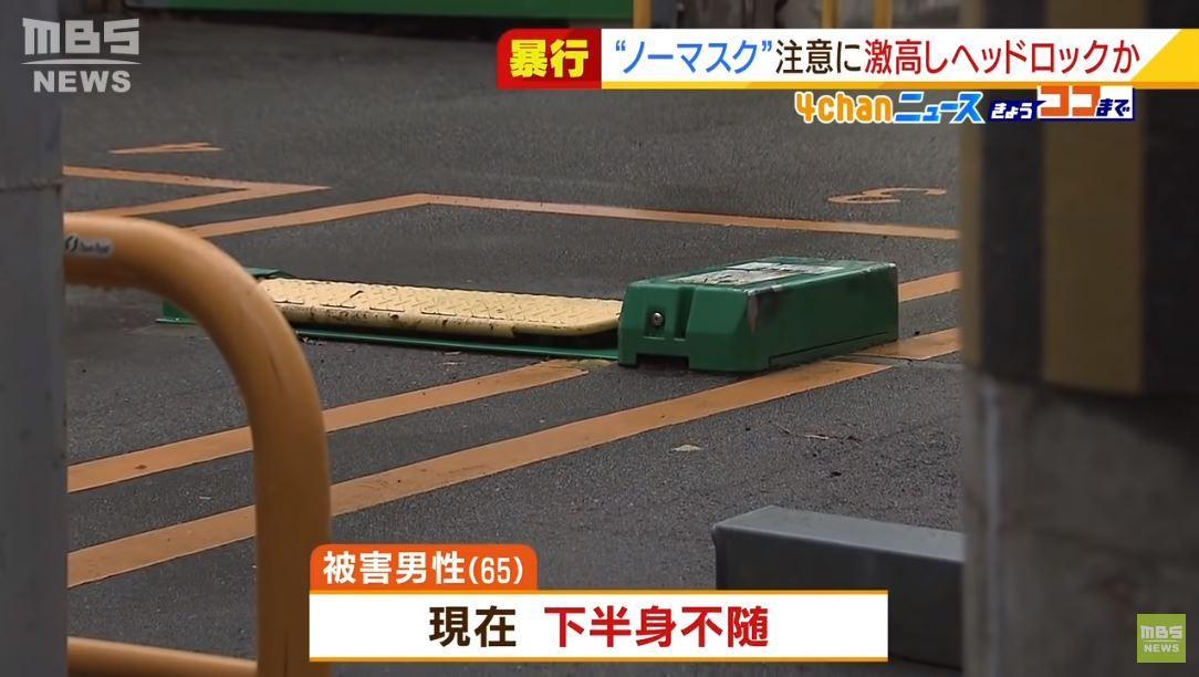無職男性(65)から「マスクをしろよ」と注意されたことに腹を立て、男性の首を絞めながら投げ飛ばし、重傷を負わせた疑い。