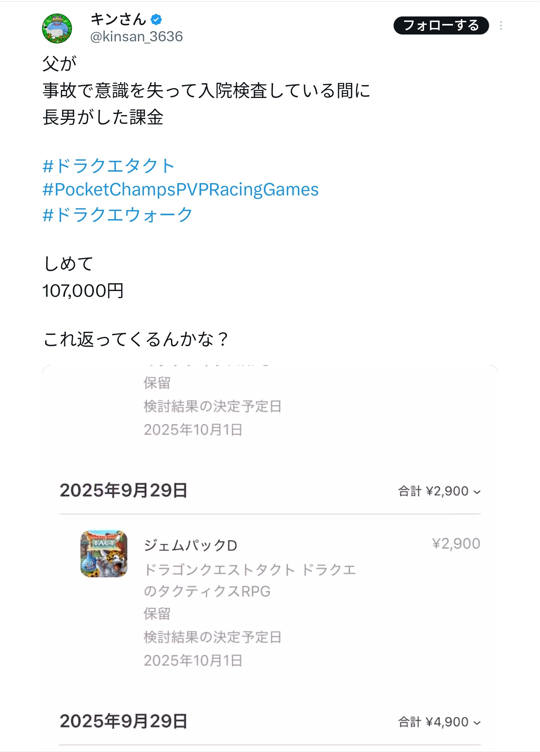 長男がした課金#ドラクエタクト#PocketChampsPVPRacingGames#ドラクエウォークしめて