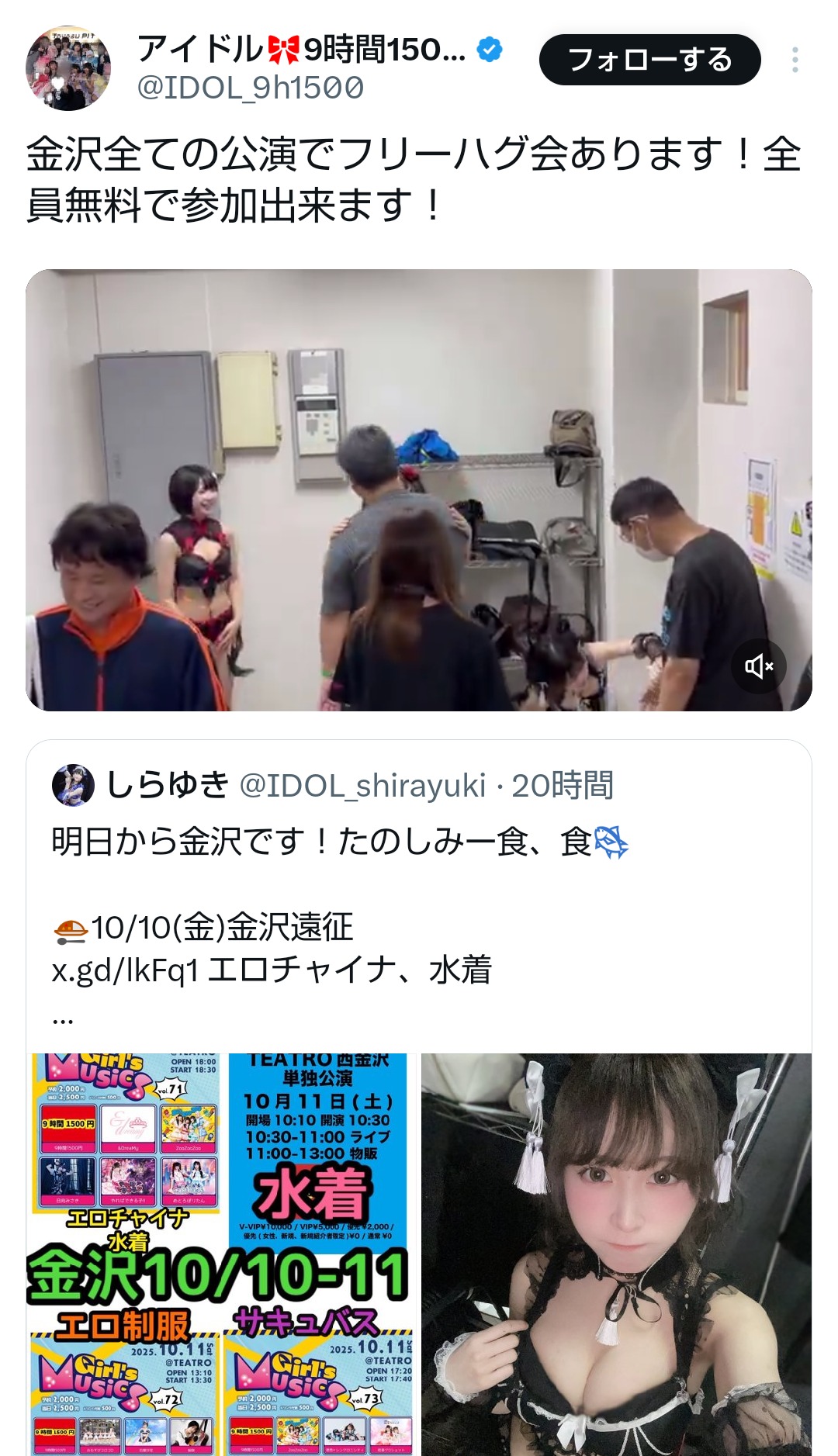 【動画】地下アイドルさん、ドエロい格好でフリーハグとかいう神イベントを開催しおっさんが大集結wwww