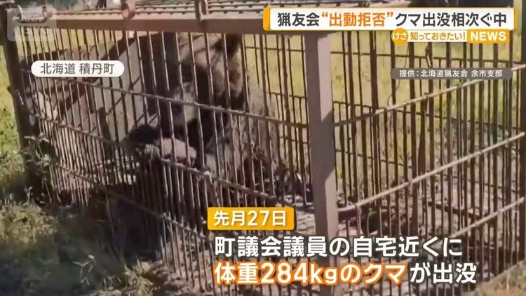 先月27日、北海道・積丹町に住む町議会議員の自宅近くに体重284キロのクマが出没しました。