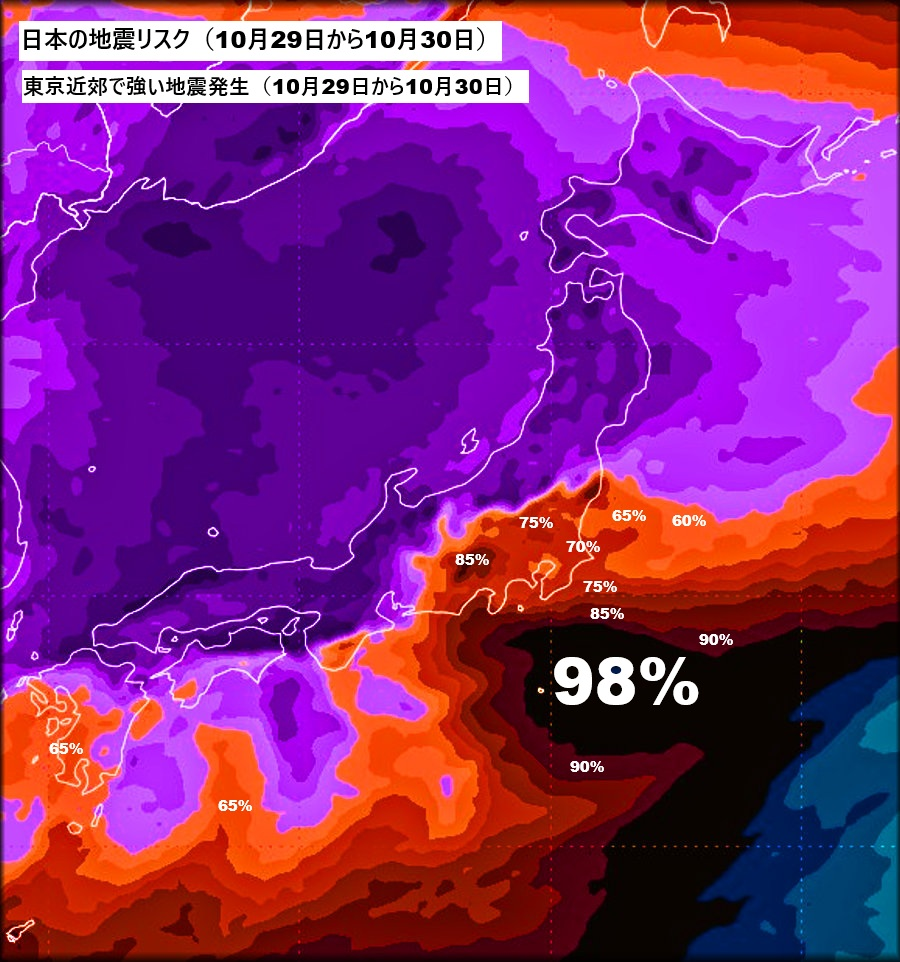 今後48時間以内に、東京のすぐ南で強い地震が発生する可能性が高いです。予報マップをご覧ください。 pic.twitter.com/xJm2mlJEFV
