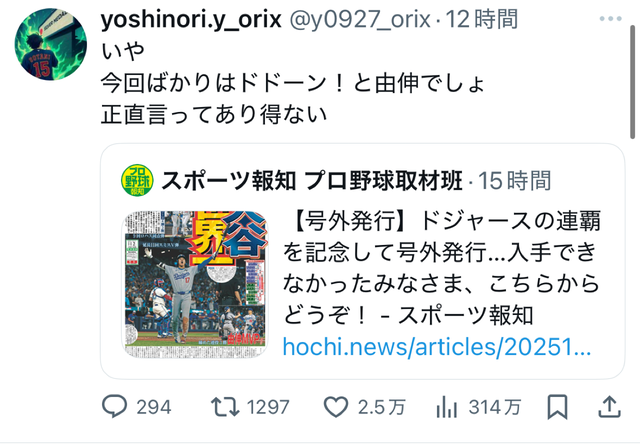 【号外発行】ドジャースの連覇を記念して号外発行…入手できなかったみなさま、こちらからどうぞ! – スポーツ報知 https://t.co/b0MKDlCKYr pic.twitter.com/i1iK28DIzy