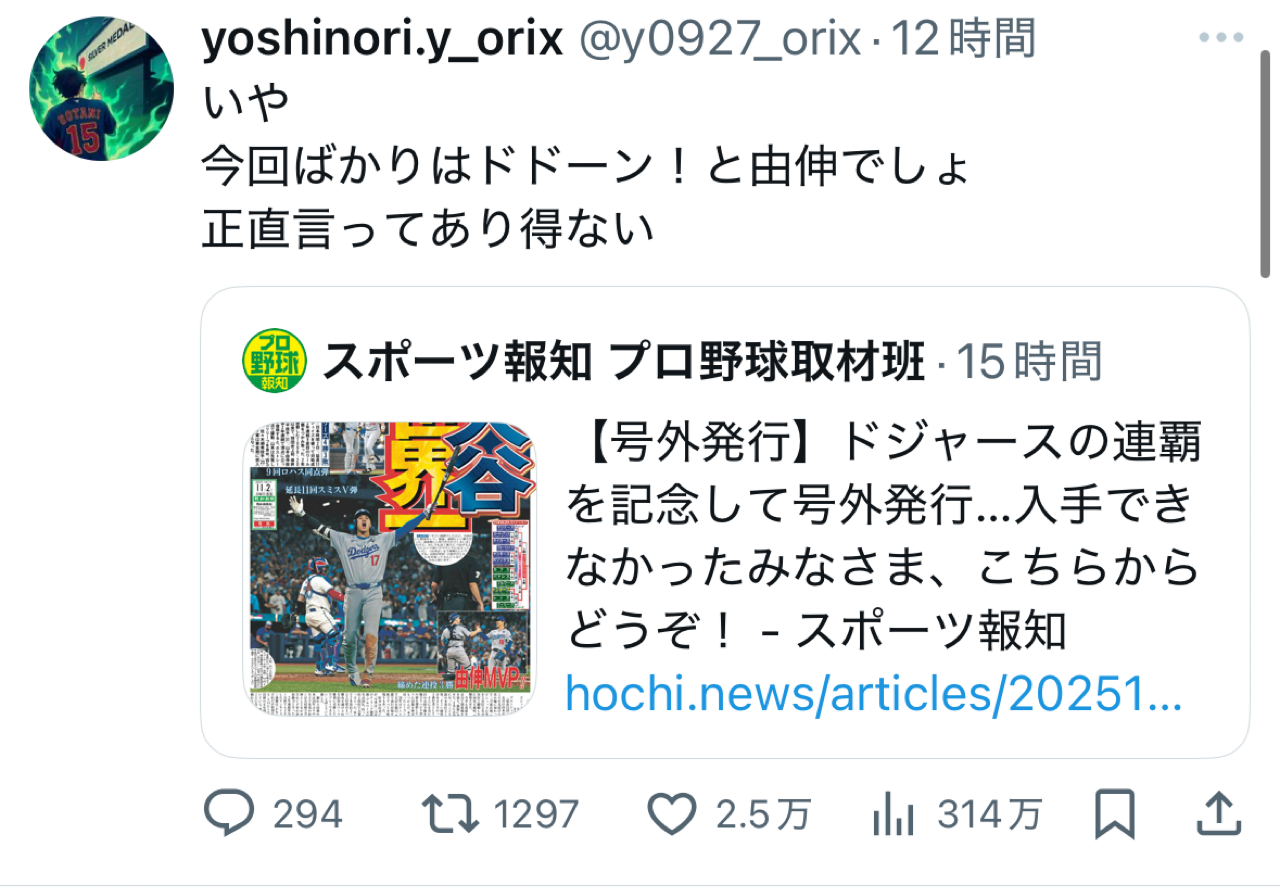 【号外発行】ドジャースの連覇を記念して号外発行…入手できなかったみなさま、こちらからどうぞ! – スポーツ報知 https://t.co/b0MKDlCKYr pic.twitter.com/i1iK28DIzy