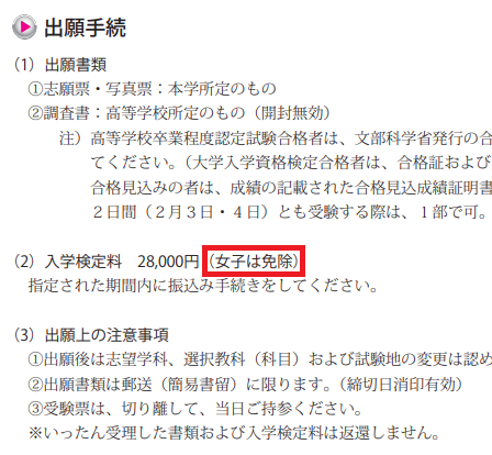 女子枠はいまや普通になったが、受験料女子だけ免除をしている大学もあるのか! pic.twitter.com/1GYTizM53r