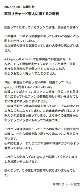 【悲報】リチャードさん、クビになる 2025年11月21日 最終更新日時 : 2025年11月21日 ココナラwordpress 広告エリア 女の人が河原で一人で寝てるんだけど・・・・・・・(※画像あり) 【悲報】2000人並んだヒカルのパチ屋来店、完全なぶっこ抜き営業だった模様ww 【悲報】ロイヤルホスト、あまりにもロイヤルすぎるwwww 立憲民主党「苺ましまろは醜悪なもの、人身売買につながるから一掃しなければならない」表現規制を宣言して炎上中 【悲報】事務の求人、どこにも無い 【呆然】ワイ「万札くずして」店員「ダメです」ワイ「じゃあうまい棒一つ」店員「はい」→結果!! 『餓狼伝説 City of the Wolves』シーズン1最後のDLCキャラ「Mr.BIG」12/9本日17:00参戦!ブレイクダウン映像や開発者対戦動画など公開中 【動画】「バカっぽいからやめて」横揺れダンスが小学生にバズるwwwwwww 【画像】麻生太郎家の朝食風景、ハンパないwwwwwwwwww 【世も末】13歳の女の子が歌舞伎町で立ちんぼ → 男性が群がる地獄絵図・・・・・・!! 【悲報】リチャードさん、クビになる 1:名無し :2025/11/20(木) 18:13:48.819ID:iF6o3hP84 ※関連記事【速報】Aぇ! group草間リチャード、ハーフち●ぽ出して逮捕 【速報】チ●ポ露出した草間リチャードさん、新宿二丁目のハッテン場から出てきた模様 2:名無し :2025/11/20(木) 18:14:10.231ID:t46LfUu8w リチャードほんま覇権やな 3:名無し :2025/11/20(木) 18:14:18.571ID:hgE9Im54x 何したんや 続きを読む 続きを見る(外部サイト) 広告エリア 女の人が河原で一人で寝てるんだけど・・・・・・・(※画像あり) 【悲報】2000人並んだヒカルのパチ屋来店、完全なぶっこ抜き営業だった模様ww 【悲報】ロイヤルホスト、あまりにもロイヤルすぎるwwww 立憲民主党「苺ましまろは醜悪なもの、人身売買につながるから一掃しなければならない」表現規制を宣言して炎上中 【悲報】事務の求人、どこにも無い 【呆然】ワイ「万札くずして」店員「ダメです」ワイ「じゃあうまい棒一つ」店員「はい」→結果!! 『餓狼伝説 City of the Wolves』シーズン1最後のDLCキャラ「Mr.BIG」12/9本日17:00参戦!ブレイクダウン映像や開発者対戦動画など公開中 【動画】「バカっぽいからやめて」横揺れダンスが小学生にバズるwwwwwww 関連記事 世界四大GOTYの1つ「Golden Joystick Awards」UGOTYは『Clair Obscur: Expedition 33』!7部門受賞の結果に 「Golden Joystick Awards」授賞式は11/21 1:00~。ニコニコ動画でも配信 「Golden Joystick Awards」UGOTYノミネート12作品が決定&最終投票も受付開始!どの3作品を選ぶ? 4大アワードの1つ「Golden Joystick Awards」候補リストが発表、一般投票受付が開始!どれを選ぶか悩ましい賞なども多数。どれに投票する?