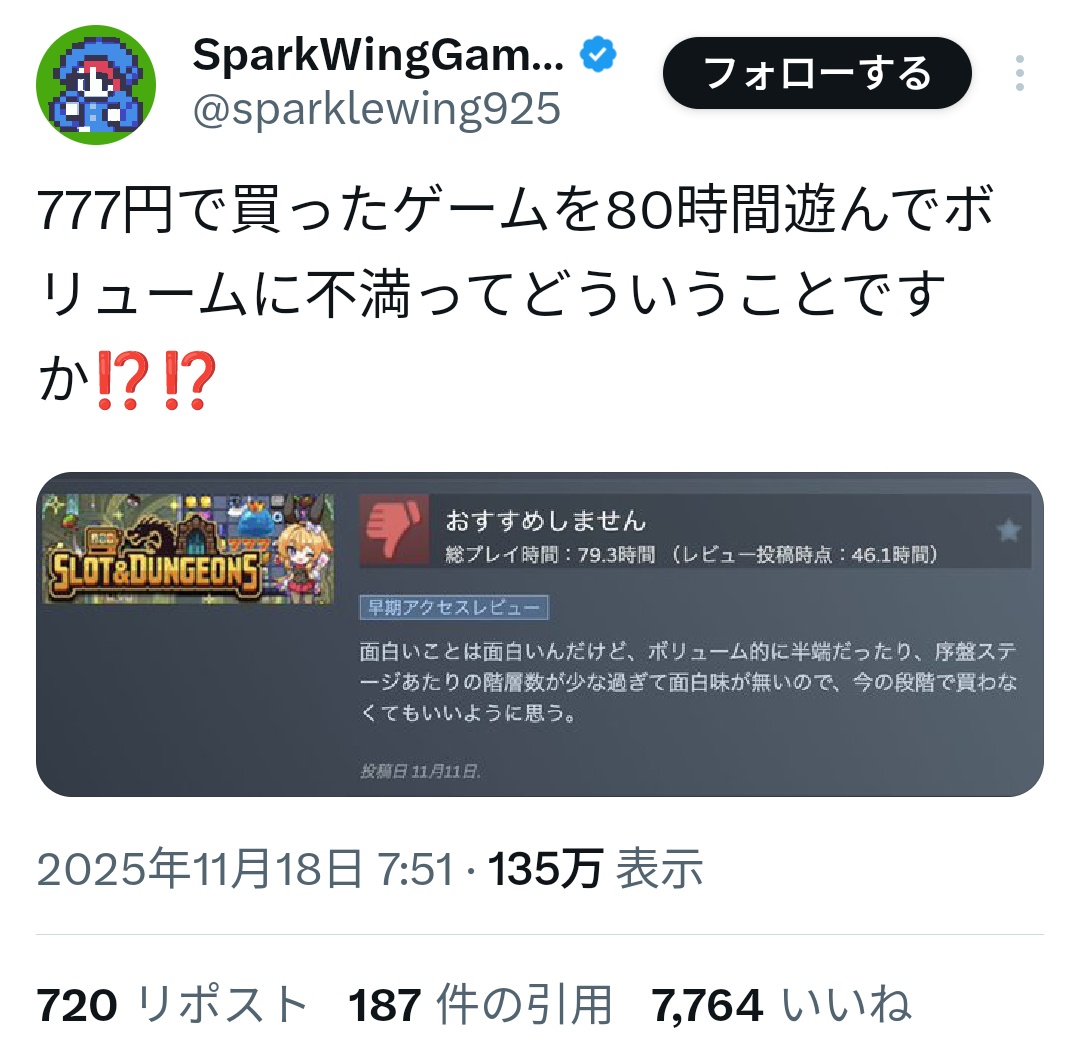 ゲーム製作者、80時間遊ばれたゲームにボリューム不足と言われ愕然・・・・