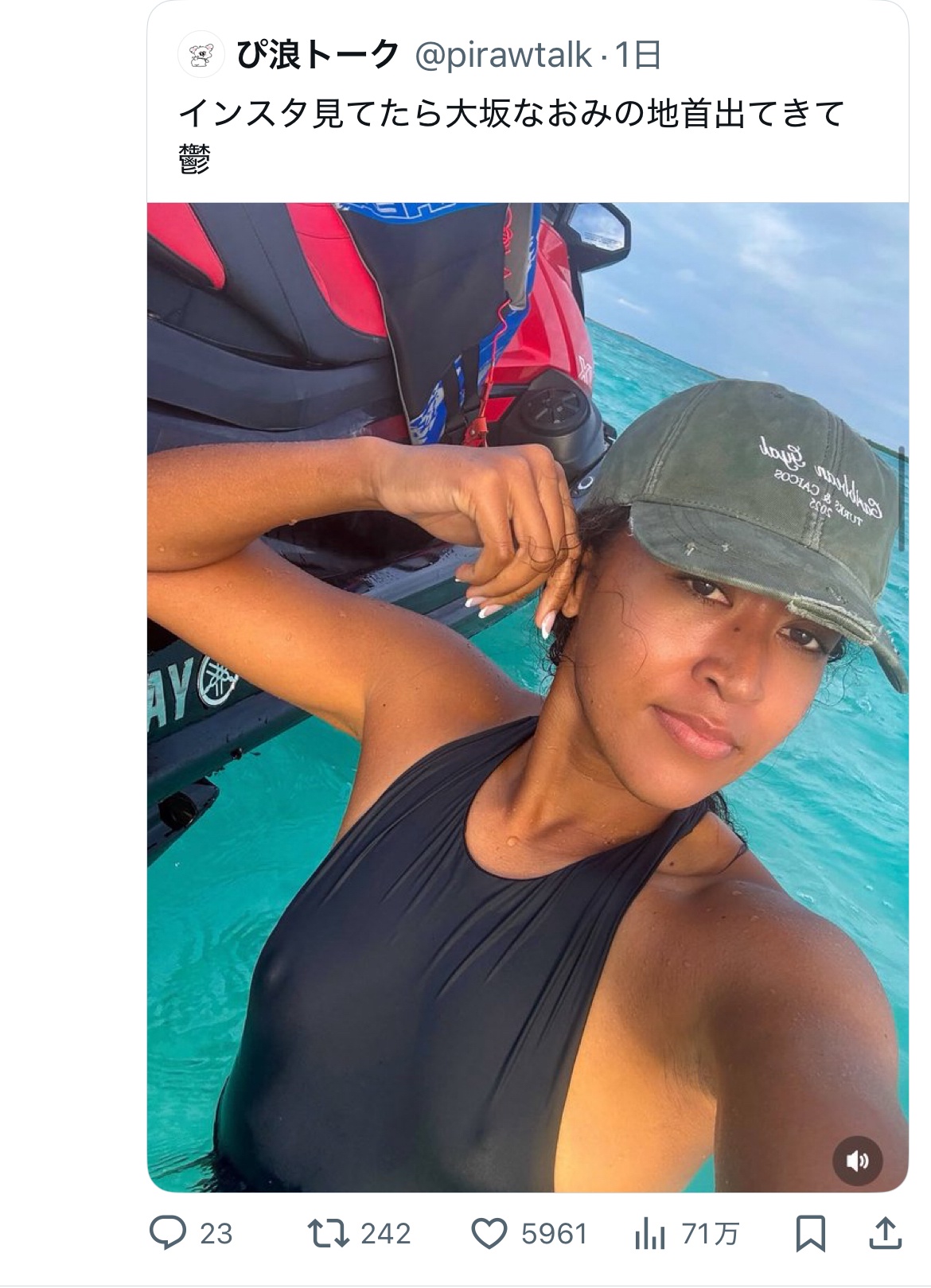 インスタ見てたら大坂なおみの地首出てきて鬱 pic.twitter.com/WKx8DFrJpl