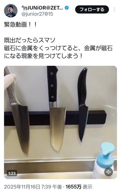 【画像】プロゲーマー世紀の大発見をしてしまう!金属を磁石にくっつけていると金属も磁力を持つようになる模様wwwwww