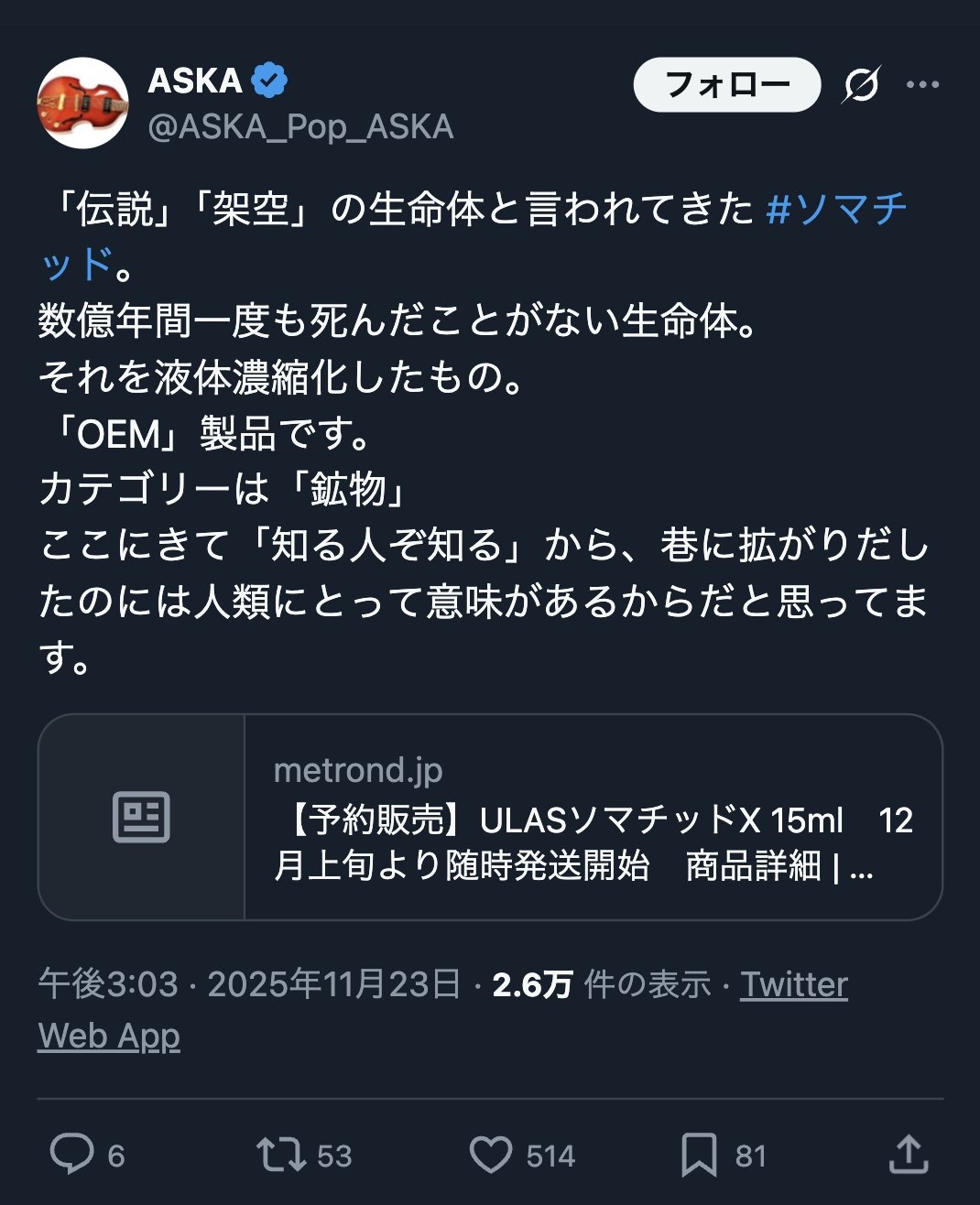 歌手のASKAさん、知る人ぞ知るアレを勧めてしまう・・・