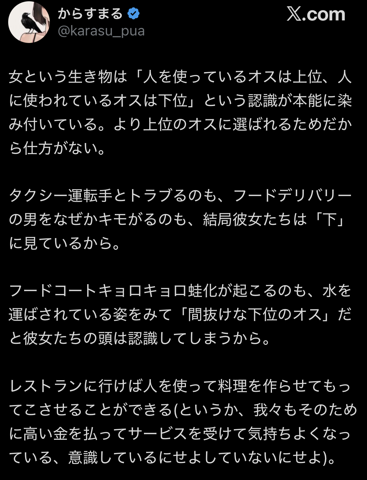 女という生き物は「人を使っているオスは上位、人に使われているオスは下位」という認識が本能に染み付いている。より上位のオスに選ばれるためだから仕方がない。