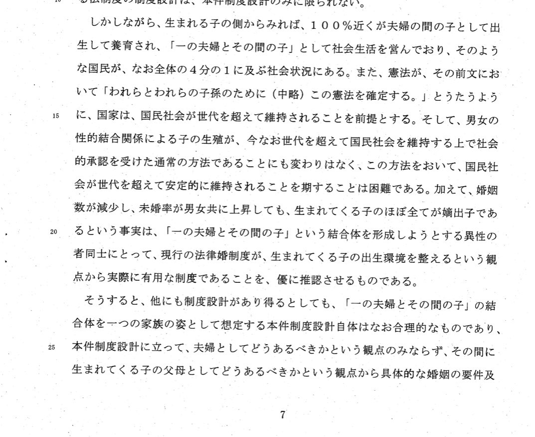 「男女がセ●クスしたことにより産まれた子供が社会的承認を受けた通常の子供である。」