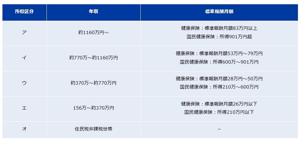自己負担限度額は被保険者の年齢や所得によって変わり、69歳以下であれば「ア」「イ」「ウ」「エ」「オ」の5段階に分かれています(70歳以上は3段階)。この区分情報が表示されてしまいます。全文はこちら