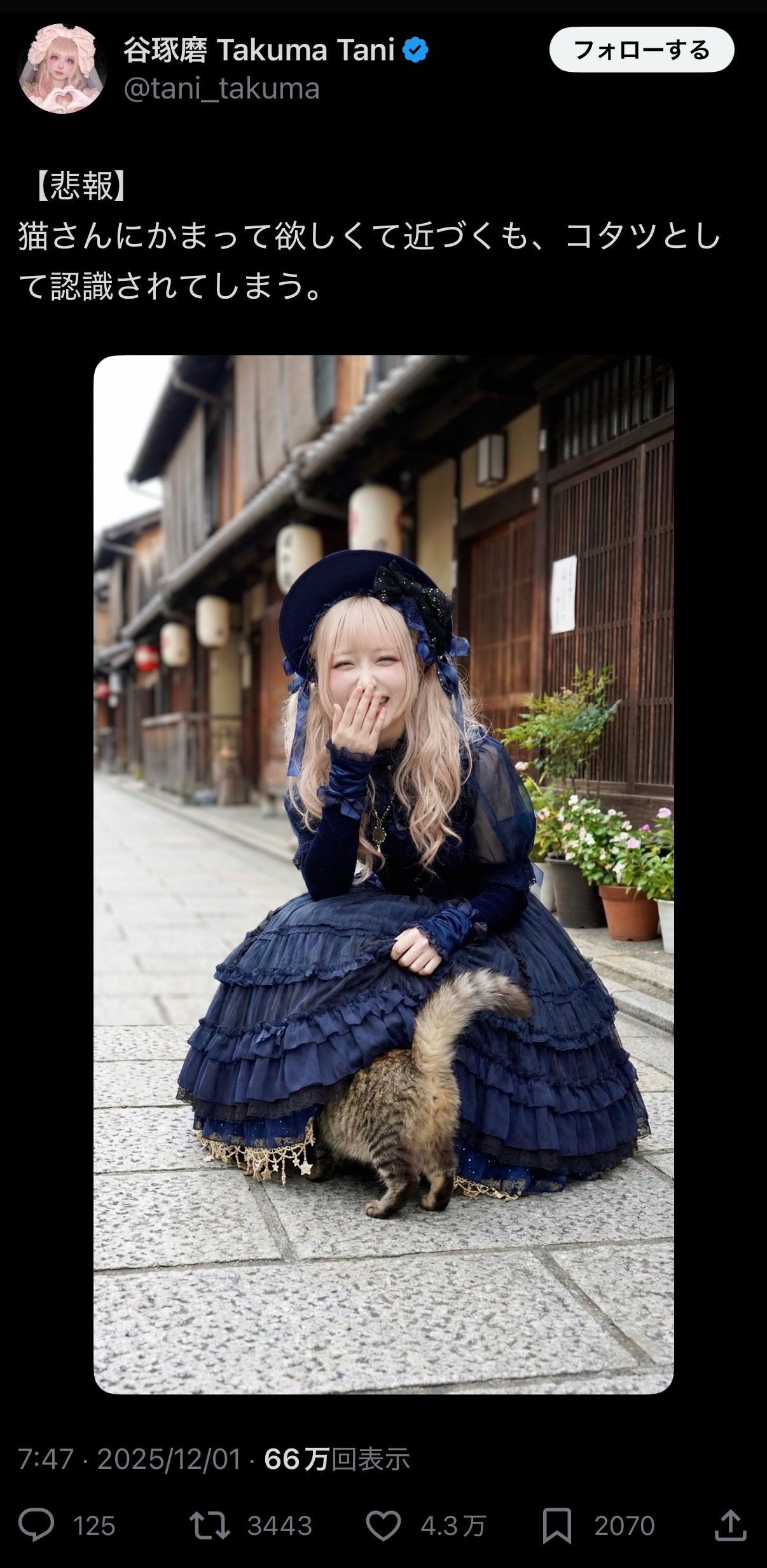 【画像】ゴスロリ女さん、ネッコさんにコタツ扱いされてしまう