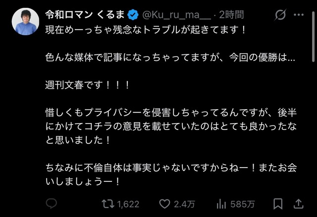 — 令和ロマン くるま (@Ku_ru_ma__) December 4, 2025