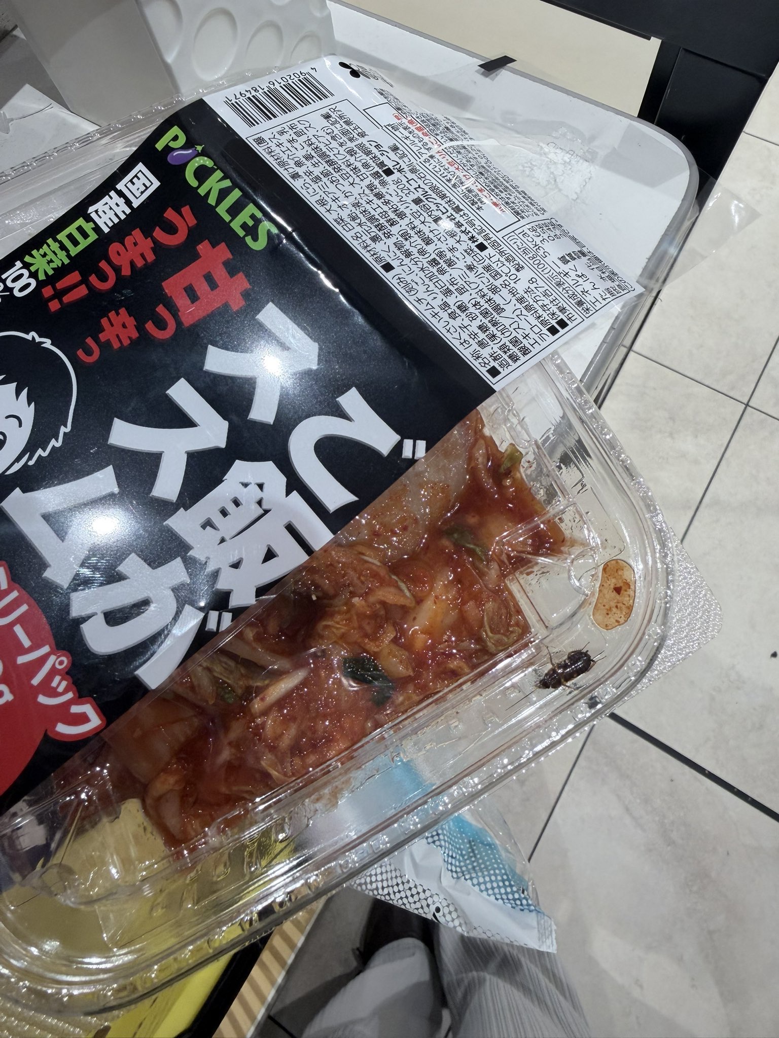 もう2度とこのキムチ買えない。。。ちっこい虫と目が合った😭😭😭😭😭