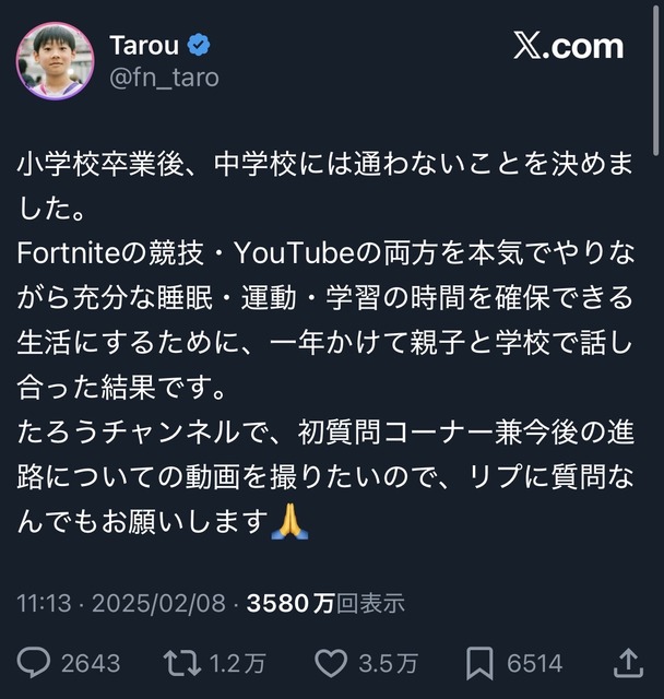 中学行かないと宣言してネット民にボコボコに叩かれるも