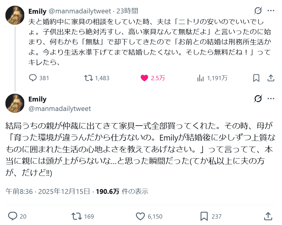 【悲報】夫「家具?ニトリでよくね」→妻「ギィヤォォオオオ!!!!!」