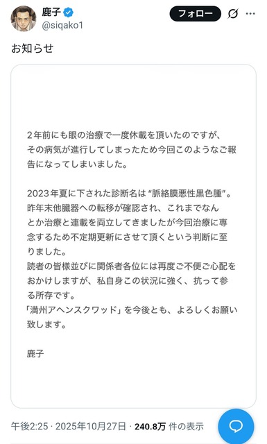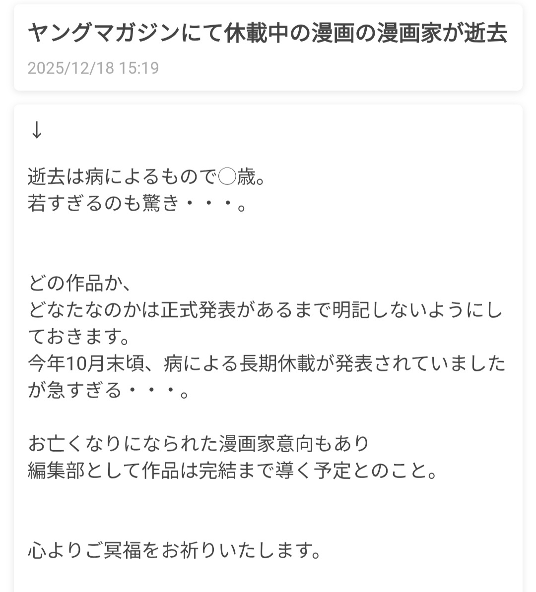 10月に長期休養発表した漫画家なんてすぐ特定されるやろに