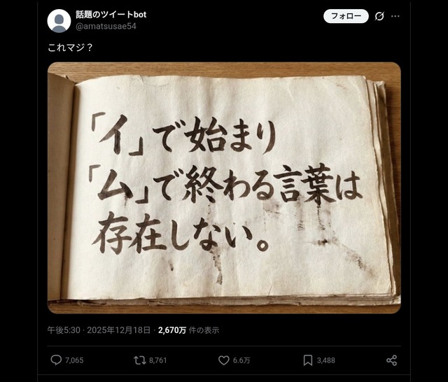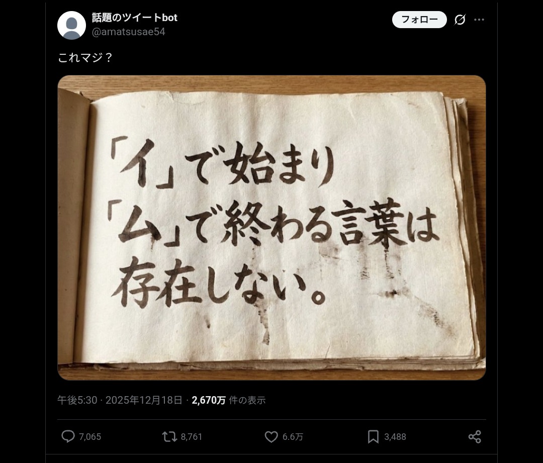 — 話題のツイートbot (@amatsusae54) December 18, 2025