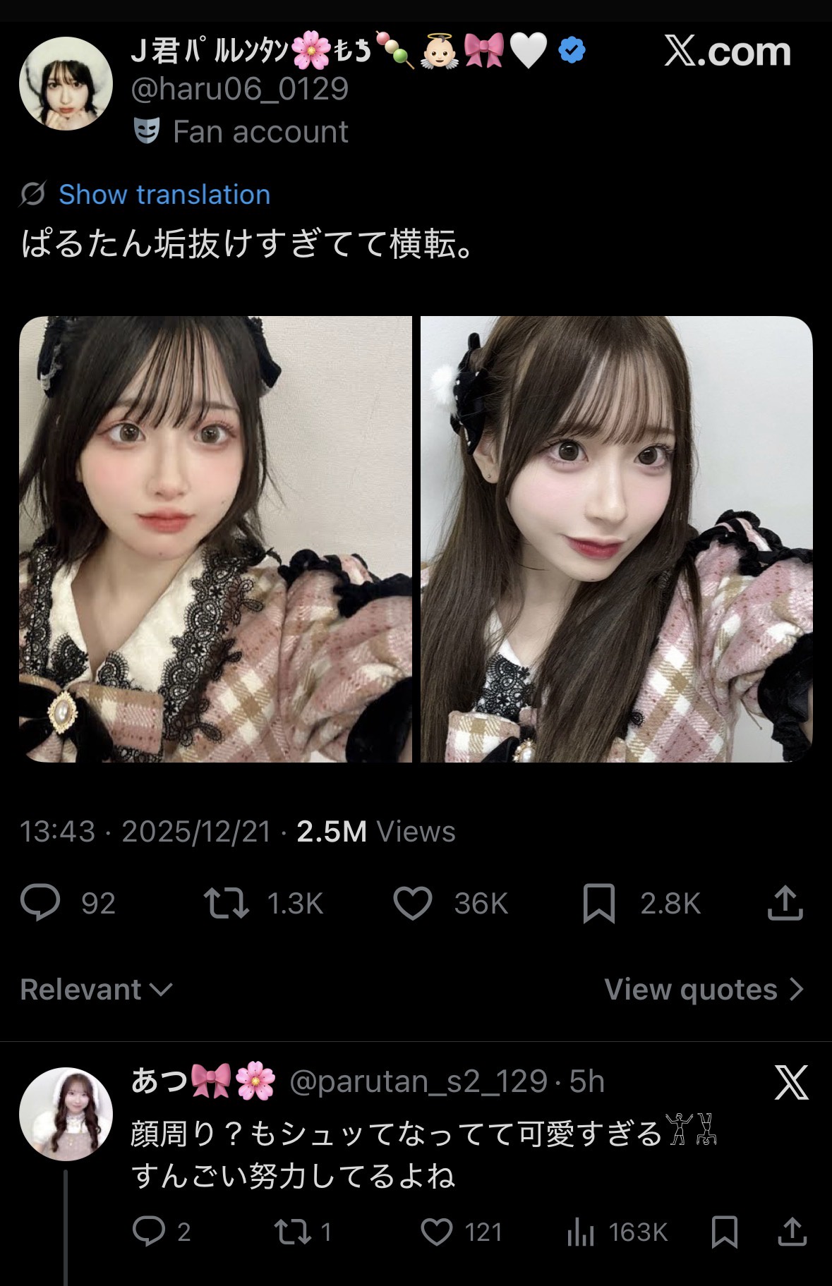 気をつけて帰ってね!! pic.twitter.com/gJ3jFKNHCK— 桜庭遥花(CUTIE STREET) (@haruka_cs0129) December 20, 2025
