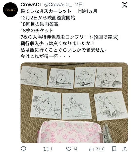 【悲報】細田守「果てしなきスカーレット」を18回見たファン、ガチで切ない・・・・・