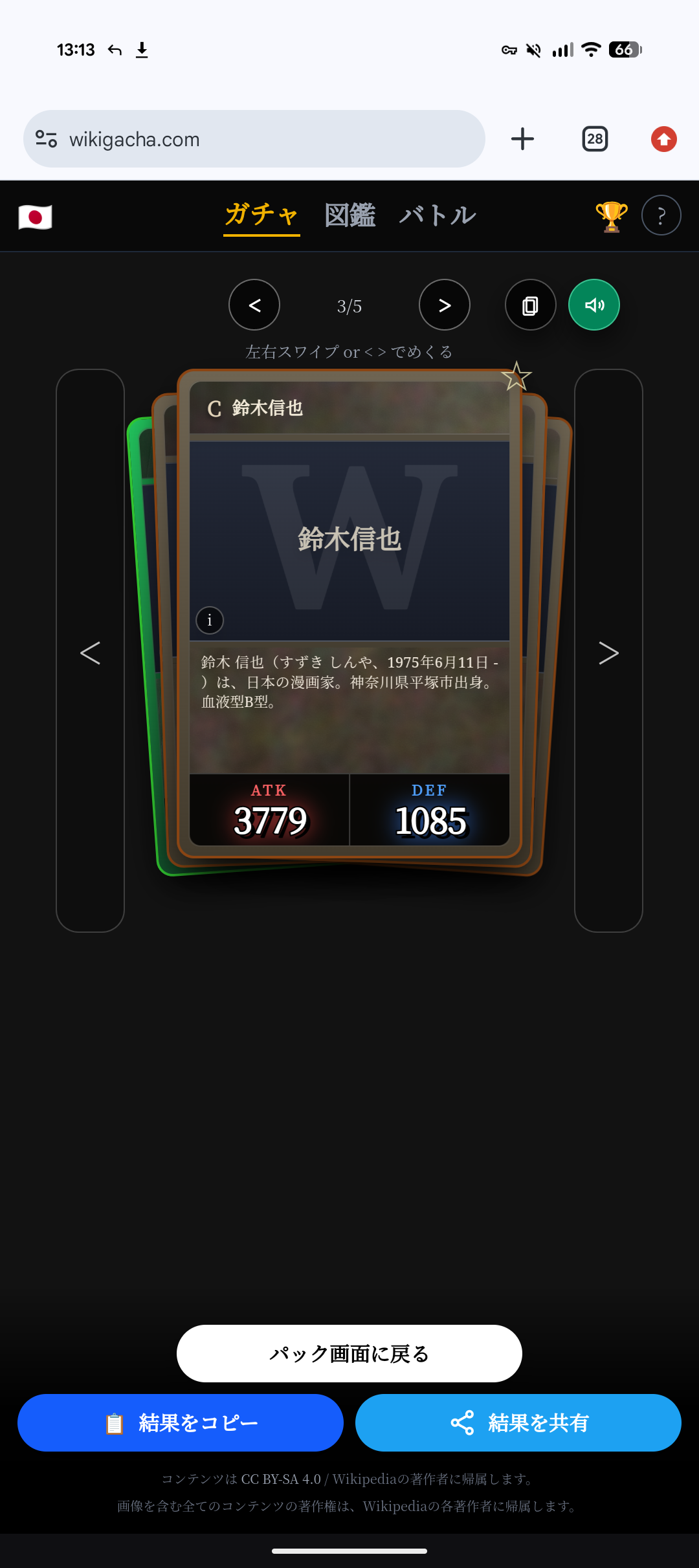Wikipediaトレーディングカード化!無料パックでバトル開始wwww 2026年3月4日 最終更新日時 : 2026年3月4日 ココナラwordpress 広告エリア 【画像】JCの保育実習、園児も大満足wwwwwwwwwwww 【悲報】トランプ「イランは精神的におかしい、彼らが攻撃してくると感じたから先制攻撃した」 【悲報】X女さん「居酒屋で5杯しか飲んでないのに8杯請求された!!」→お店「お問い合わせが殺到しているのでご説明します」⇒結果! 【画像】海外アニオタがブチギレた!!えちえちフリーレンのフィギュアがこちらwww 【画像】お姉さん、下着透けてますよwwww Wikipediaトレーディングカード化!無料パックでバトル開始wwww 【画像】日本人「6畳でも頑張ればこんな素敵な部屋になるよ!」⇒10万いいねwwwwwwwww 【悲報】ソープランド、2、30年以内に完全終了か… 【画像】農業女子さん、タンクトップ一枚で自撮りをパシャリwwwwwwww 【朗報】𝑪𝑯𝑰𝑵𝑷𝑶の人、ついに結婚wwwwwww Wikipediaトレーディングカード化!無料パックでバトル開始wwww 1:名無し :2026/03/03(火) 13:10:08.230ID:swcrLHtUO パック剥きまくれー! Wikipedia Gachahttps://wikigacha.com/ 2:名無し :2026/03/03(火) 13:10:45.973ID:swcrLHtUO えっちなカードも出るで! 3:名無し :2026/03/03(火) 13:12:27.600ID:/DoYomLGx SRの上あるんか? 5:名無し :2026/03/03(火) 13:13:29.511ID:swcrLHtUO >>3 レジェンドレアあるで 続きを読む 続きを見る(外部サイト) 広告エリア 【画像】JCの保育実習、園児も大満足wwwwwwwwwwww 【悲報】トランプ「イランは精神的におかしい、彼らが攻撃してくると感じたから先制攻撃した」 【悲報】X女さん「居酒屋で5杯しか飲んでないのに8杯請求された!!」→お店「お問い合わせが殺到しているのでご説明します」⇒結果! 【画像】海外アニオタがブチギレた!!えちえちフリーレンのフィギュアがこちらwww 【画像】お姉さん、下着透けてますよwwww Wikipediaトレーディングカード化!無料パックでバトル開始wwww 【画像】日本人「6畳でも頑張ればこんな素敵な部屋になるよ!」⇒10万いいねwwwwwwwww 【悲報】ソープランド、2、30年以内に完全終了か… 関連記事 【ガチ】外国人彼女、エロくて優しくてコスパ最強wwww 【悲報】ソープランド、2、30年以内に完全終了か… 【画像】日本人「6畳でも頑張ればこんな素敵な部屋になるよ!」⇒10万いいねwwwwwwwww 【画像】農業女子さん、タンクトップ一枚で自撮りをパシャリwwwwwwww