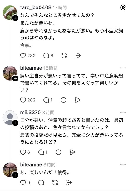 犬にビビって鹿が道路に飛び出すケースもあるから基本NGとかやなかったか?
