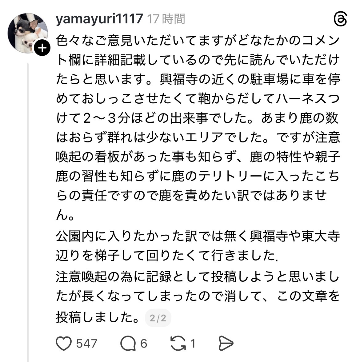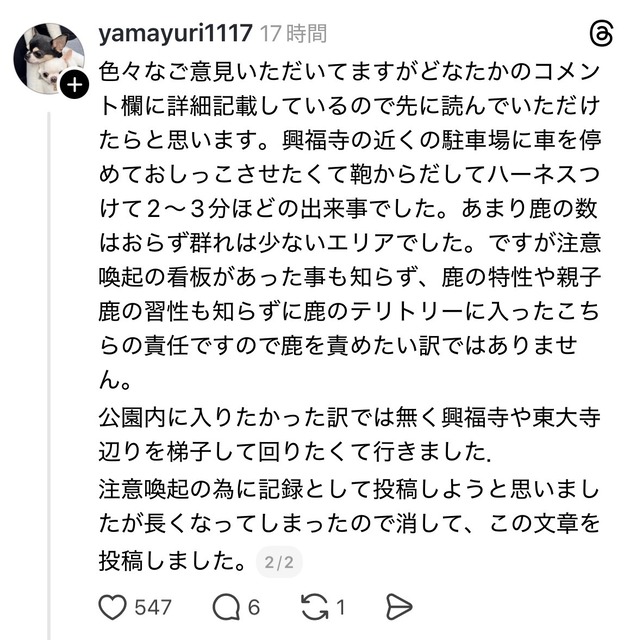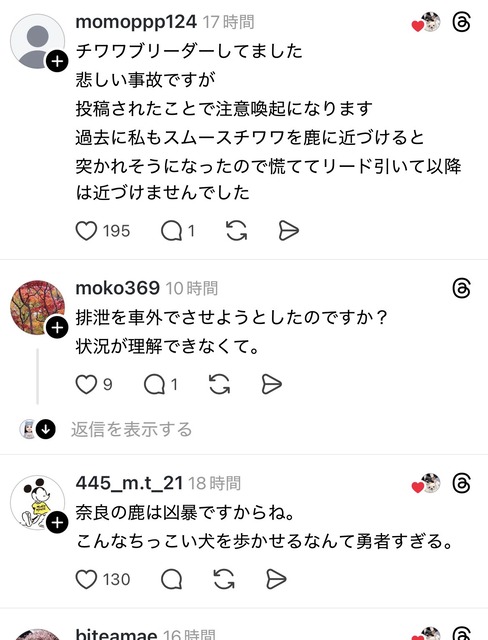 【訃報】奈良の鹿さん、チワワを殺してしまう・・・・・・・