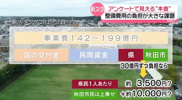 【悲報】秋田のスタジアム建設、県民の8割に拒絶され無事オワコンへ