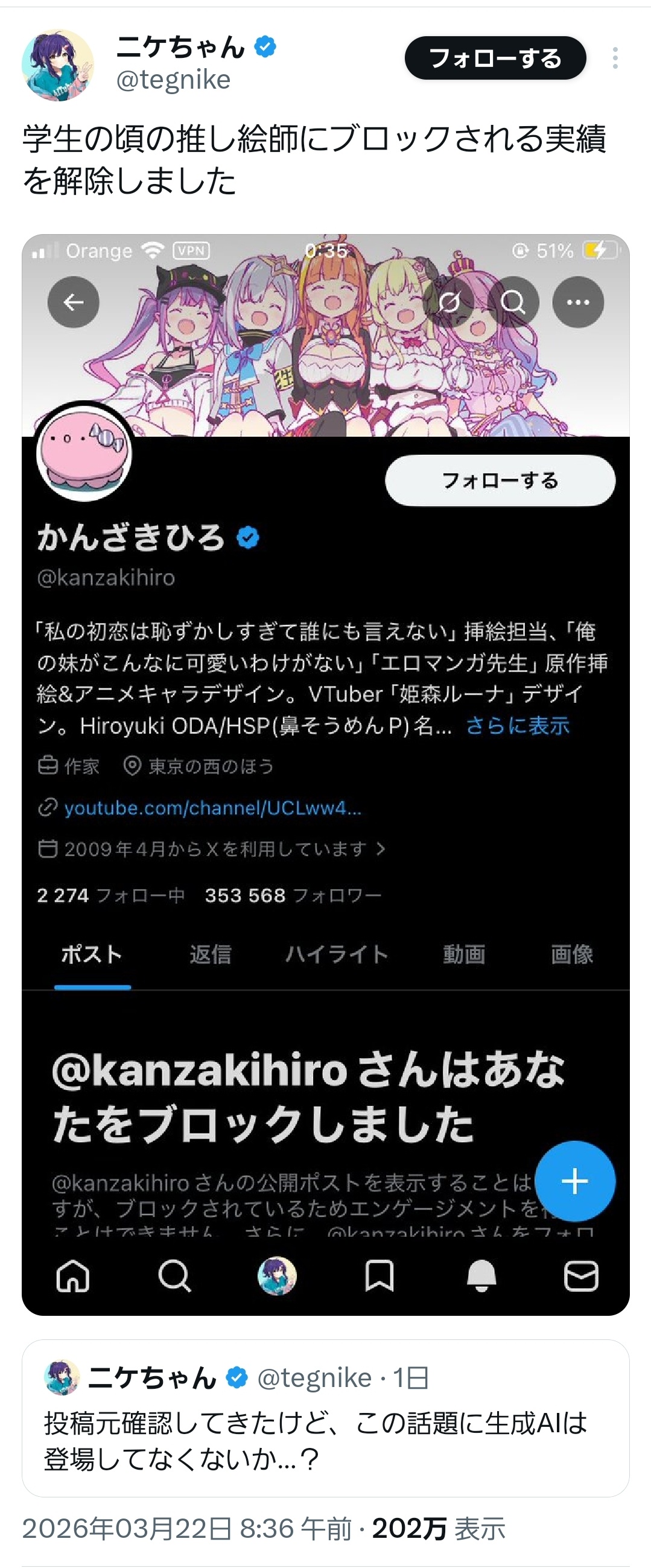 【悲報】『俺妹』の有名イラストレーターさん、無関係な話題でAI批判してフルボッコにされる