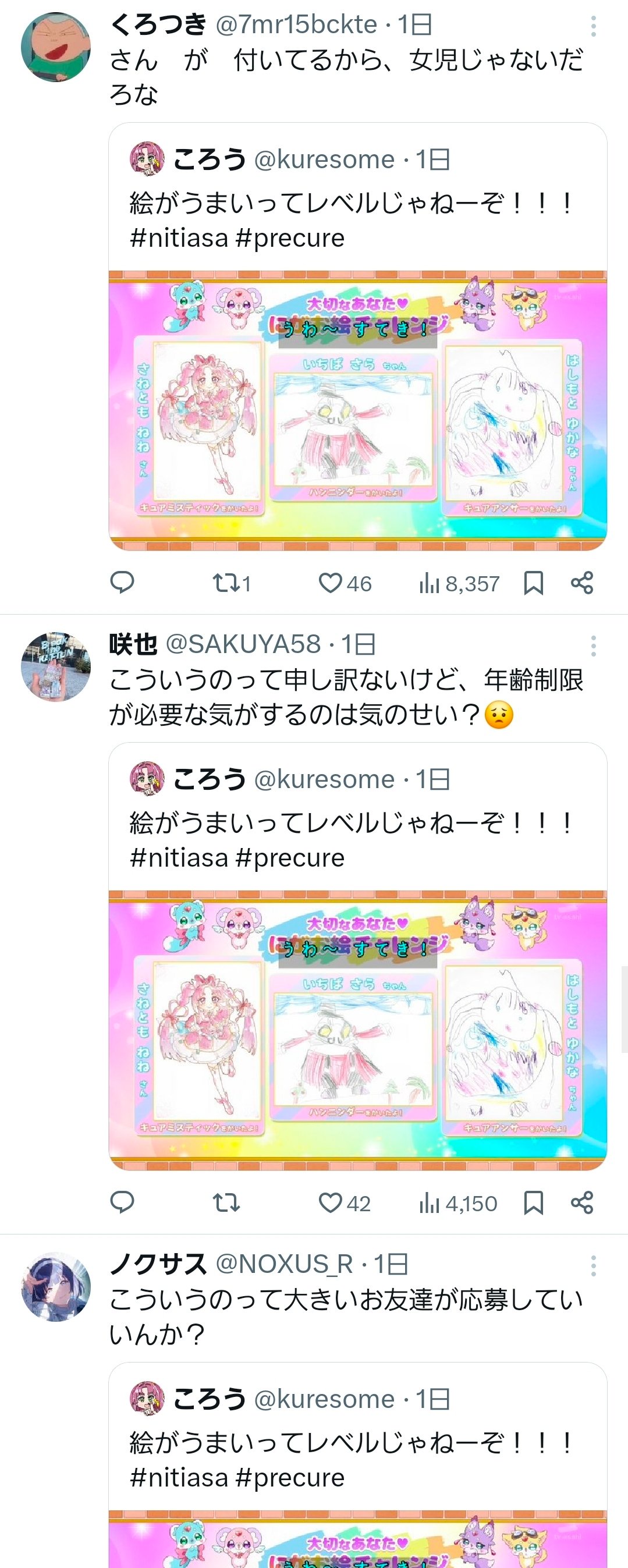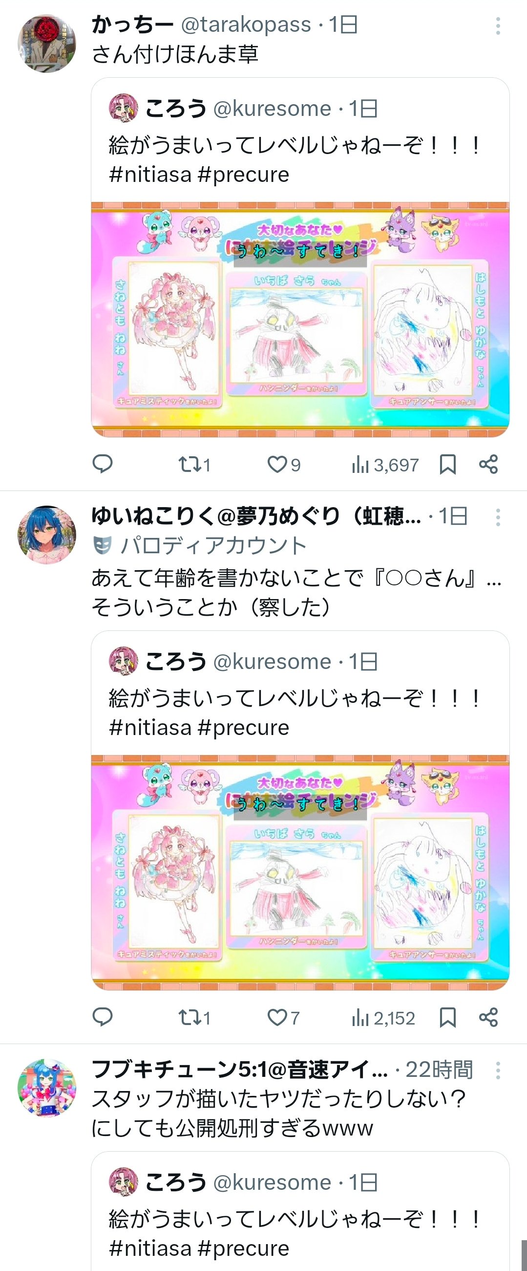 【悲報】大人のプリキュアオタク、子供のイラスト投稿コーナーに混ざってしまい炎上…