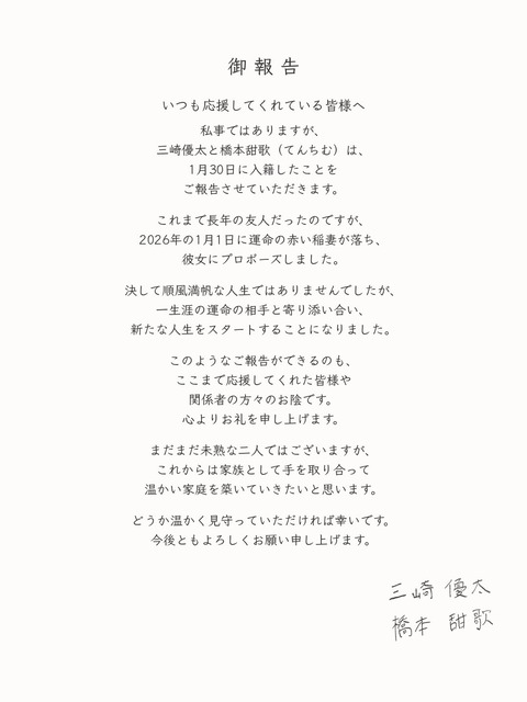 — 三崎優太(Yuta Misaki) 元青汁王子 MISAKI (@misakism13) March 28, 2026